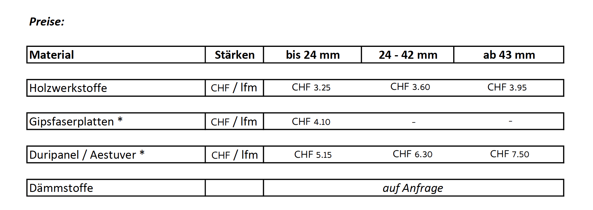 - Plattengrössen max. 2500 x 6500 mm